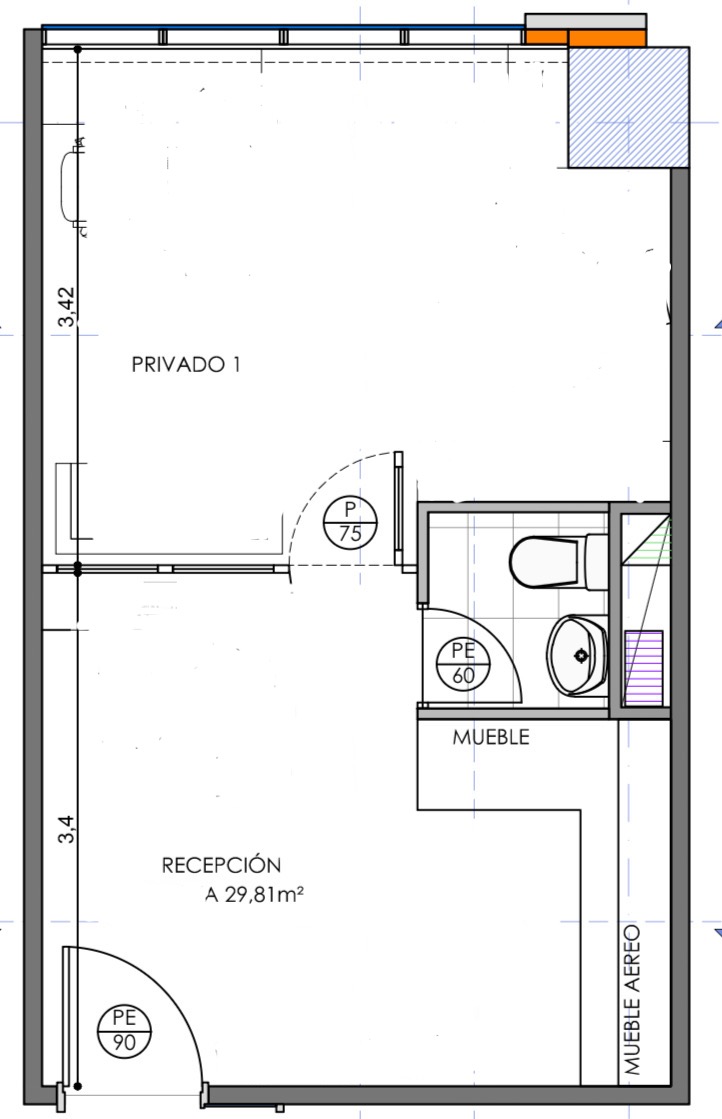 Estupenda oficina habilitada, dos areas divididas por una mampara y puerta de vidrio, un baños, luminarias, muebles empotrados, equipo aire acondicionado, una linda vista hacia la ciudad.